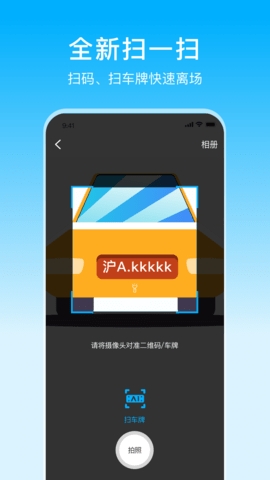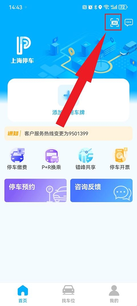 4、用户也可以通过扫描车牌来进行快捷添加车牌号,在首页点击右上角的扫描图标即可。