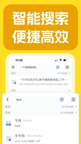 1、内容分区,学习更高效:软件里的内容都分区展示,有释义、用法、例句等等,让学习更有条理,效率更高。
