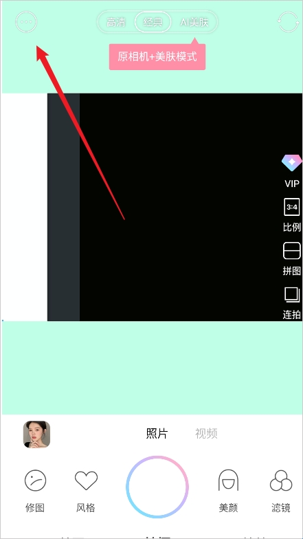 1、进入甜盐相机页面后,首先点击左上角三点标识