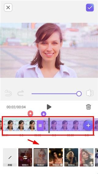 3、如小编所示,选择喜欢的特效模板,自由拖动进度条进行使用即可。