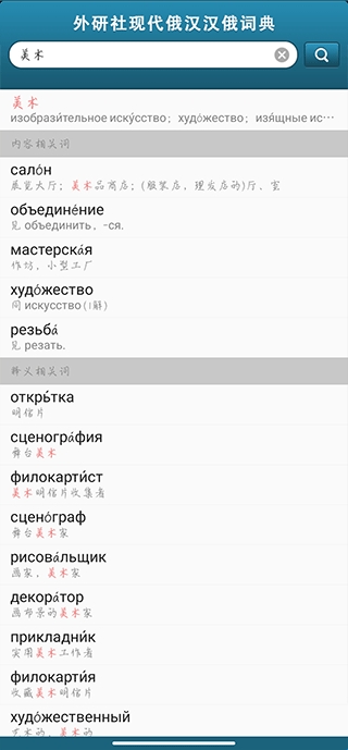 1、进入软件后,可在搜索框查找单词,支持输入汉语或俄语