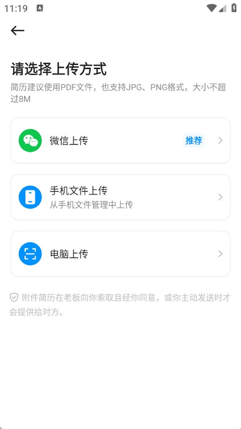 2、或者在简历附件页面上传保存在本地的简历附件;