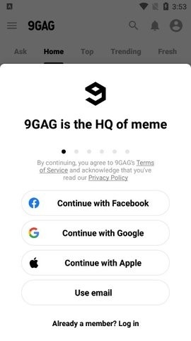 1、用户打开9gag,登录进入首页,在首页点击右上角头像;