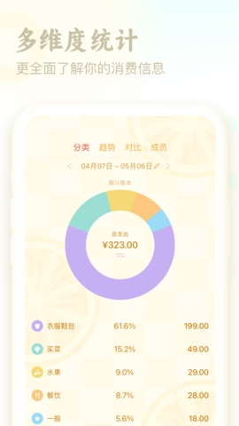 1、随时查看你的每一笔消费详细记录,知道钱花哪儿了,花销最大的支出是什么。