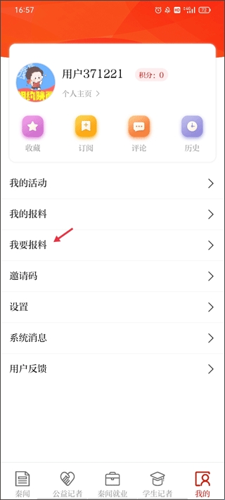 1、注册并登录软件账号之后,切换到【我的】页面,点击上方的“我要报料”。