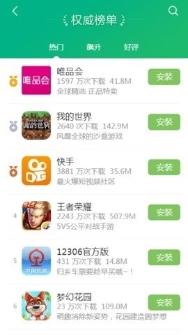 2、点击“榜单”即可查看热门应用排行,涵盖热门榜、飙升榜、好评榜,助您发现大家都在用的优质应用。