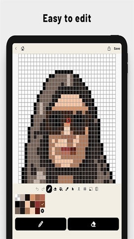 3、绘画工具:提供多种绘画工具,如画笔、填充桶等,使用户可以进一步编辑和美化生成的像素图像;