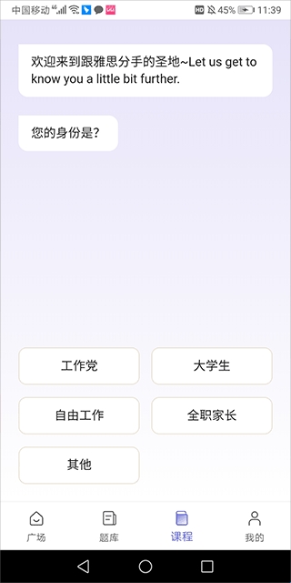 1、首先用户可以登录百词斩雅思app后进入课程界面中完成相关问答环节