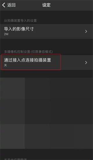 2、在“设定”界面中,点击选择“通过接入点连接拍摄装置”。