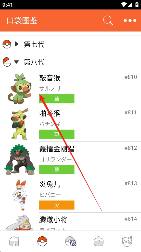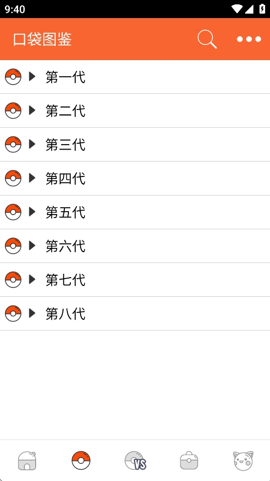 1、打开口袋妖怪图鉴App,点击你想要查看的历代精灵