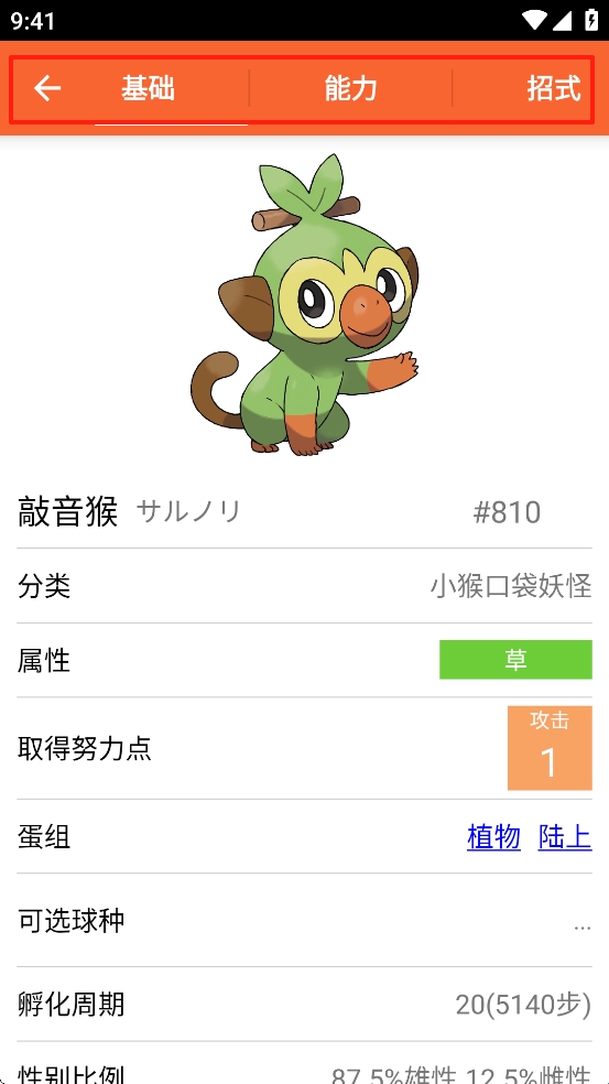 3、详细的界面提供了精灵的海量属性信息