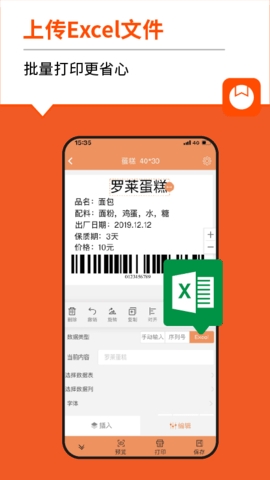 1、批量打印:支持批量打印标签,批量打印时可设置自动序列号,或者上传excel数据,录入序列号。