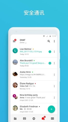1、使用MEGA内置的安全聊天进行端到端加密用户通信,包括完全隐私的视频和音频通话。