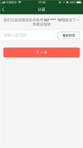 3、输入验证码后,点击下一步完成认证;