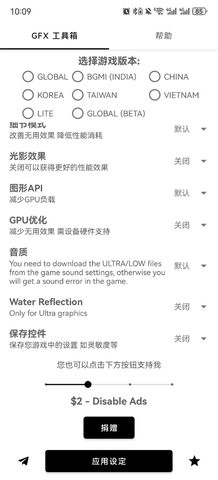 1、想用APP来提高刺激战场游戏画质的话,大家需要先在主页的顶端点击选择不同的版本,其中包括有国际服、国服及韩服等八个版本,在选择后就能对画质进行自定义修改了。