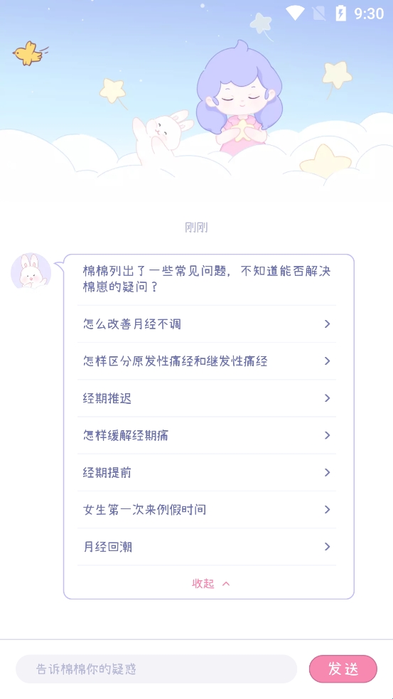 棉棉月历APP是针对女性健康打造提供的一款手机软件,拥有的功能内容是非常全面的,满足大家的一切使用需求。它能根据你的记录测算月经期、排卵期、安全期,让你从容应对,经期管理、备孕、怀孕一键解决!并且该软件还能每天给你贴心的提醒,更有健康专家解决你的疑惑,让你足不出户就能体验免费的医疗服务。