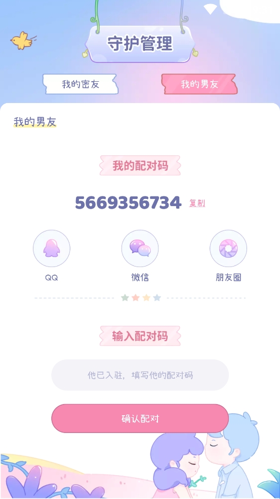 5、点击【我的守护板块】还能邀请密友、男朋友进行配对哦,让你男朋友更直观的了解你的情况