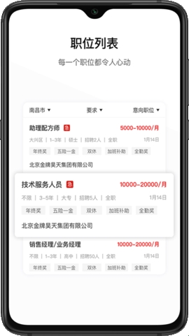 我们会根据求职者的简历内容精准推荐职位,同时也提供用户附近企业和名企招聘以及高端猎头服务;