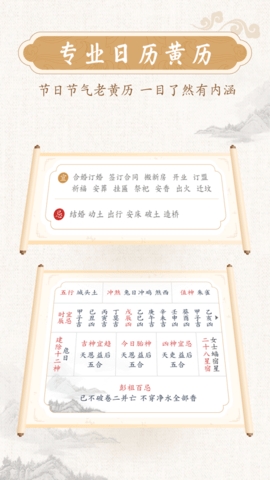3、中国风设计,界面元素传承中国传统文化,手撕日历动画界面,满足仪式感。