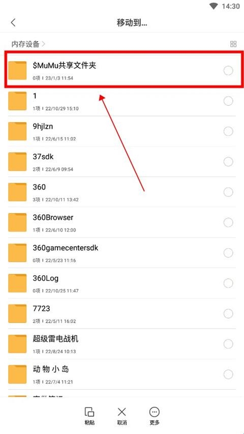 5、进入文件夹后点击下方的【粘贴】即可将它文件移动到此处。