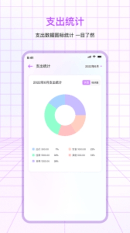 2、丰富图表:多种图表形式展示收支变化、分类消费排行等数据,助力用户快速分析消费情况。