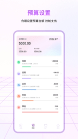 1、分类记账:根据住房、日常、出行、饮食等场景预设分类,帮助用户快速记录消费信息。