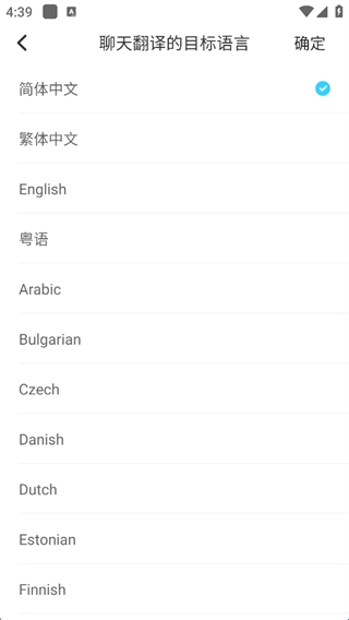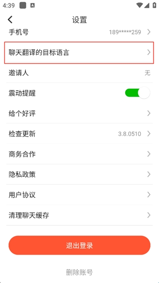 3、选择聊天翻译的目标语言;