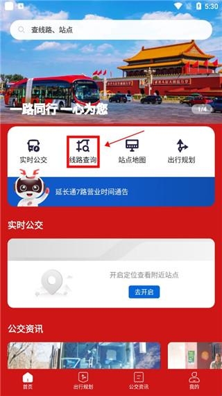 1、下载进入一路同行app,在首页中点击线路查询功能;
