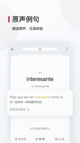 1、可以在app中开始进行单词的记背,让用户能够慢慢的记背许多西班牙语单词