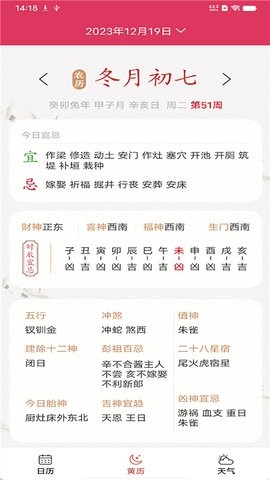 4、在黄历界面可以查看每天的宜忌吉凶等信息