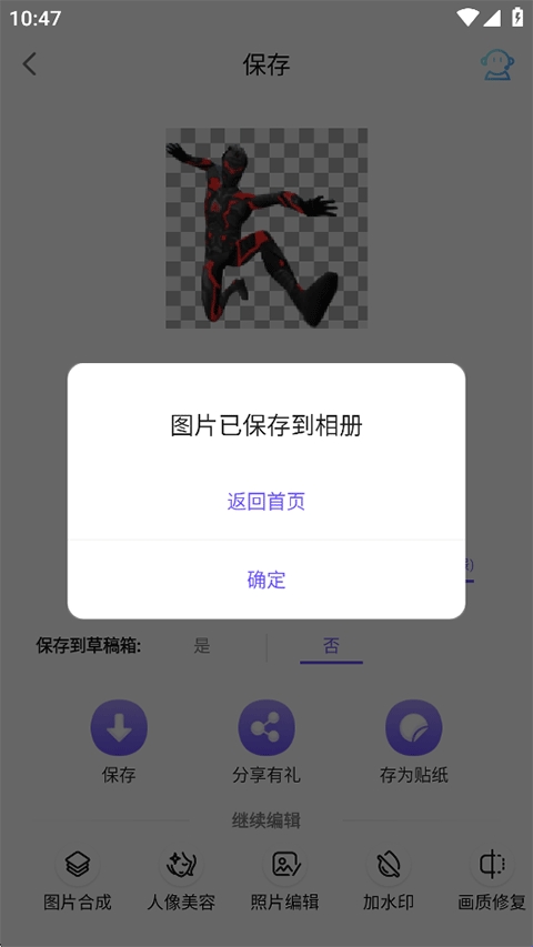 保存合成的图片到手机相册或分享到任意APP,非常方便。