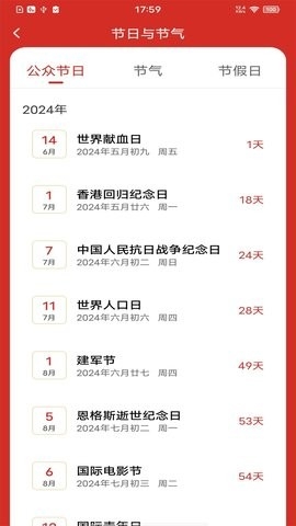 3.倒计时:帮你记录生活工作中的重要日期,以及传统节日、二十四节气,让你不再错过每一个值得纪念的日子。