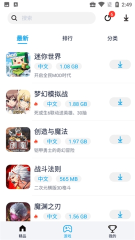 2、当有新版本游戏时就会自动出现在列表上,点击右边的更新按钮就能下载新版本完成更新。