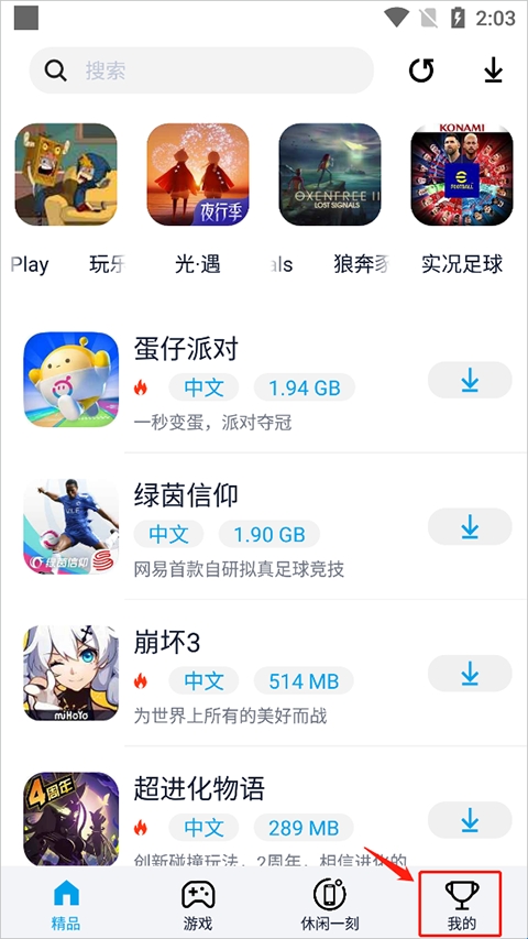 1、点击我的,进入游戏更新;