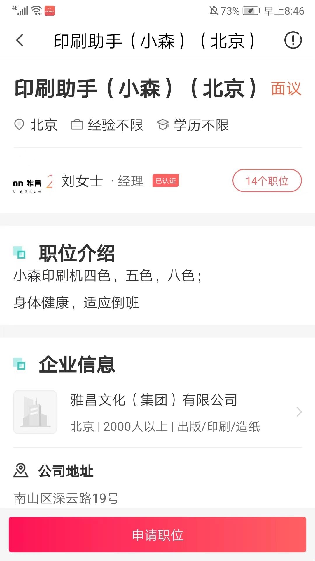 2、每一个岗位都会写清楚岗位的用人要求以及薪资的多少,也会写出该公司的文化背景等。