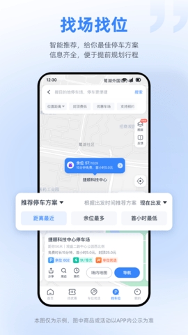 快速查找目的地停车场,停车费、空余车位实时掌握,掌上车位预定,轻松出行。