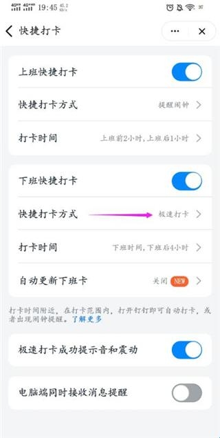 4、在【快捷打卡】页,选择【快捷打卡方式】
