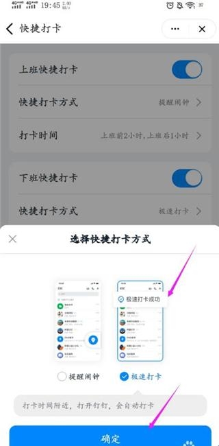 5、选择【极速打卡】,以后每次进入钉钉就会自动打卡了