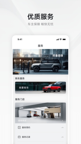 定制手册/展示车辆/查询微博记录/4s店服务评论/在线服务预订/优惠活动/在线咨询服务支持
