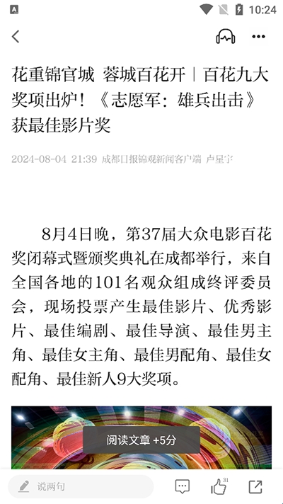 拥有推荐、时政、思想、城事、财经、文化、体育、生活、视听、专题十大频道。
