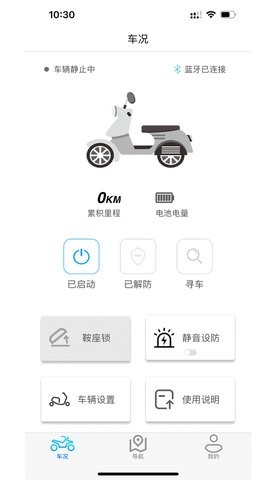 支持android手机,ios手机,骑行导航投屏,锁屏和息屏正常工作,车辆管理,支持手机控车,支持子用户功能,支持客户定制功能,支持远程控车、定位、寻车、行程、轨迹,适配全系列产品。