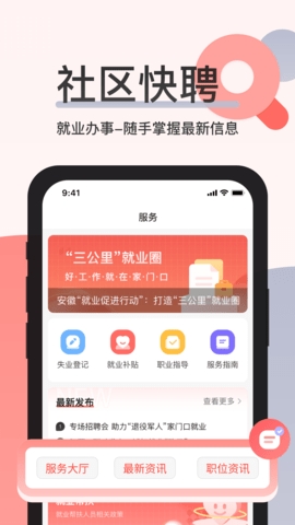 社区快聘APP是超好用的一款手机全职求职招聘软件,这里不仅有着大量的工作岗位,而且每天还会实时更新,用户还可以通过筛选条件快速找到适合自己的工作岗位。覆盖的城市范围也是非常的广泛,满足大家的各种使用需求。求职者还可以随时在线与HR沟通联系,提供的工作跟岗位都是非常靠谱的,经过严格审核,可以放心投递简历的哦!