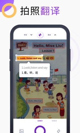 支持拍照翻译,用户只需对准图片轻轻一拍,就可快速获得相关翻译。