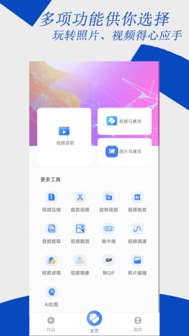 3、进入首页,能够清楚的了解各种剪辑工具,更好的进行使用