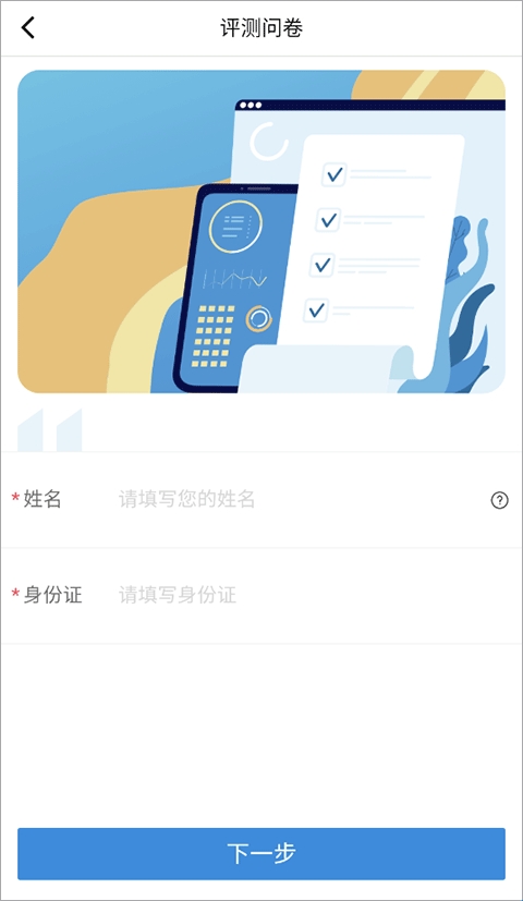 4、输入学生姓名和身份证信息就可以开始自测了。