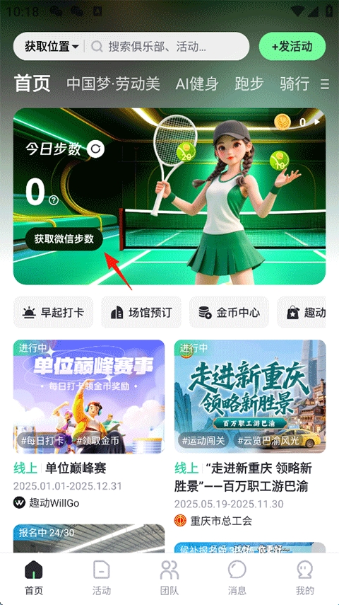 4、绑定后在首页点击获取微信步数即可实现双端同步。