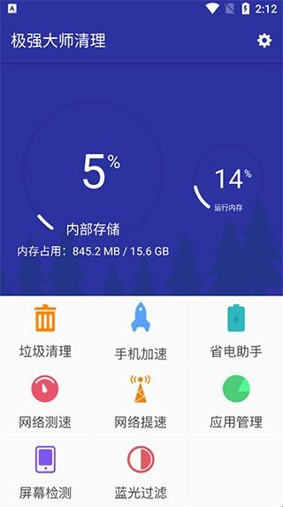 2、软件为用户提供了垃圾清理、手机加速、省电助手、网络测速、网络提速、应用管理、屏幕检测、蓝光过滤等功能;