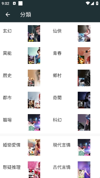 2、点击分类即可查看所有的小说题材