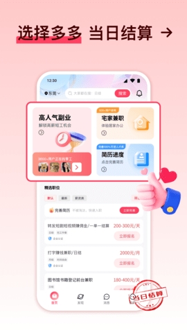 2、快速找到合适的工作:提供快速找到合适的工作功能,根据求职者的需求和条件推荐合适的兼职工作,帮助他们快速找到理想的工作机会。