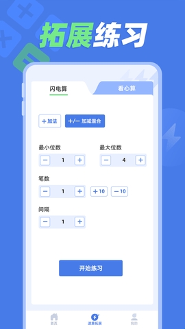 速算训练APP是超好用的一款数学学习软件,能够很好地训练大家的数学计算能力。涵盖的数学计算题库内容是非常全面的,能够满足众多用户的各种使用需求。还有拓展训练,发散大家的学习思维能力,掌握技巧就可以很好地做好每道题目。而且用户还可以自由设置错题本,重复练习自己的错题,帮助用户更好的进行记忆。